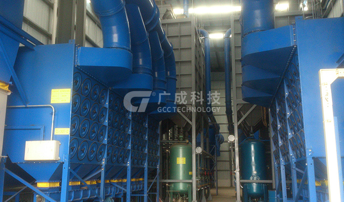 配套雙缸四槍噴砂系統(tǒng)、磨料回收系統(tǒng)、除濕系統(tǒng)、二級除塵系統(tǒng)及電控系統(tǒng)